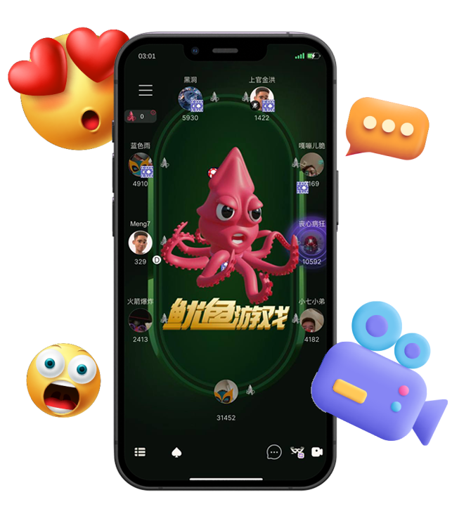 行业独创面部识别上桌从根源杜绝AI机器人及伙牌等作弊手段,同时视频特效保证用户隐私。